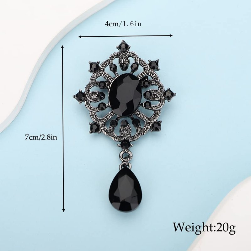 Rumtock Something Blue Crystal Dangle Drop Small Black Brooch Pin for Unisex Women Men Dress Suit Jewelry