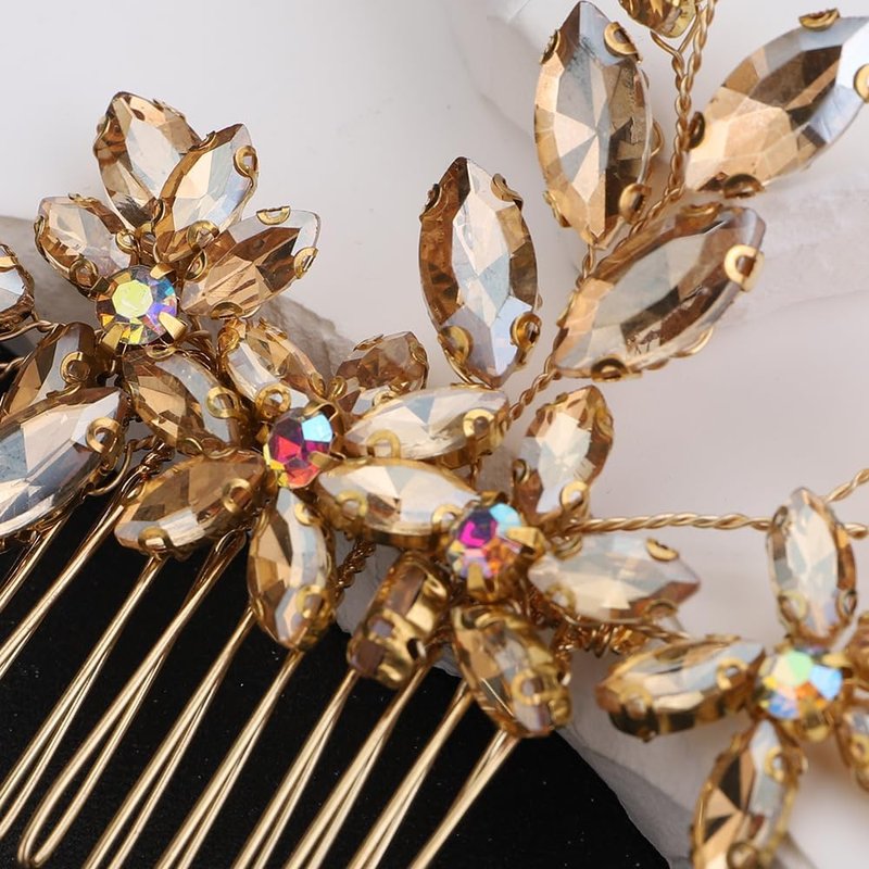 Rumtock Vintage Champagne Crystal Hair Comb Side Headpiece for Brides Women Banquet Jewelry Girls Prom Queen Hair Accessories (Champagne)