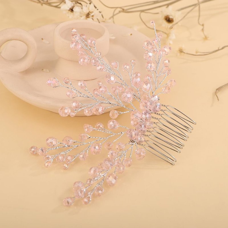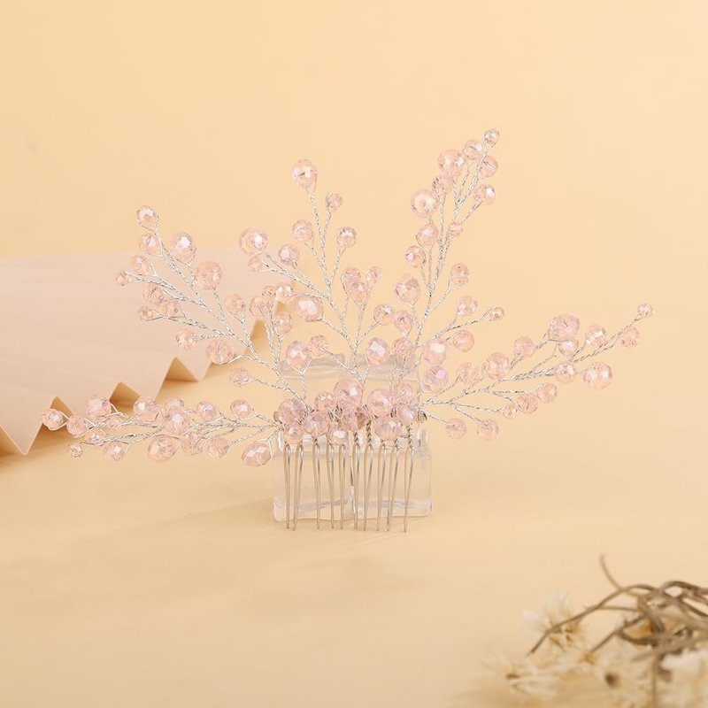 Rumtock Vintage Pink Crystal Beads Hair Comb for Women Girls Wedding Bridal Hair Accessories Jewelry Branch Hair Jewelry (Pink)