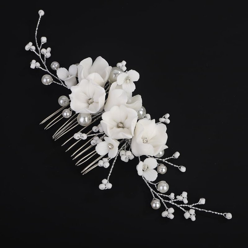 Rumtock White Flower Beads Hair Comb Side Headpiece for Wedding Brides Women Hair Accessories