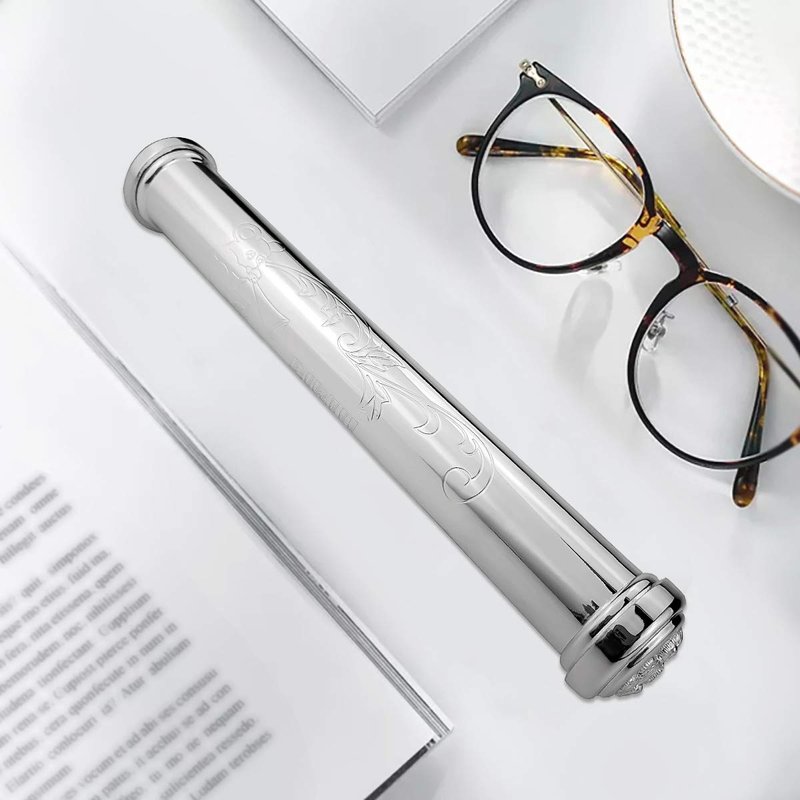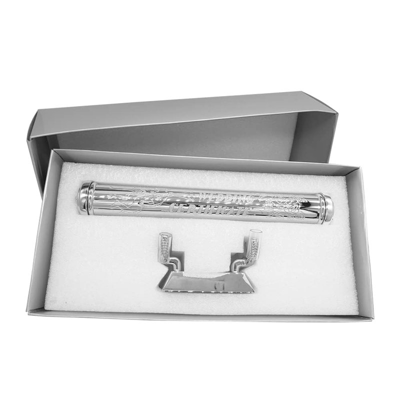 RUMUISE Certificate Display Stand Set for Home Decoration, Birth Certificate case with Stand, Metal Holder for Small Scroll, Silver Plated Baby Keepsake Gift, Scroll Storage Tube for Baptism Decor