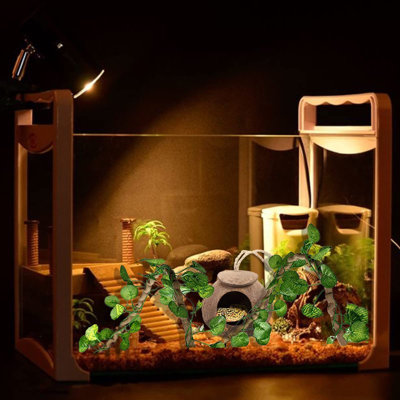 - 🦎Package Include -- 1 x reptile coconut hut 2 x vines 2 x leaves 1 x coconut fiber. The fake hanging plants add richness to the decoration of the crawling pet habitat, with leaves twining around the vine to make the decoration more realistic.