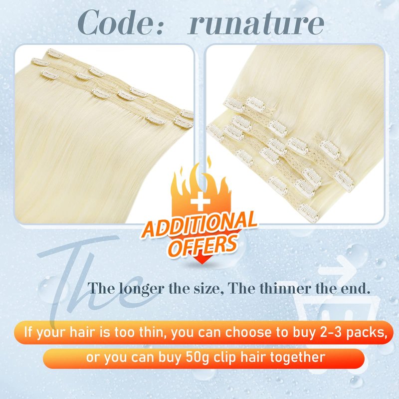 Real Human Hair: RUNATURE Hair Extensions Clip in Human Hair is made by 100% Human Hair.