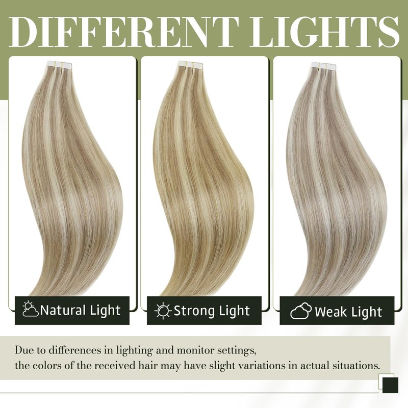 - 【About the Color】The tape in hair extensions are made of real human hair and come in a variety of colors, lengths, and textures to blend seamlessly with your natural hair. May very slightly from colors shown due to lighting, monitors, and setting. You can choose the hair according the display picture, considering with your own root hair color.