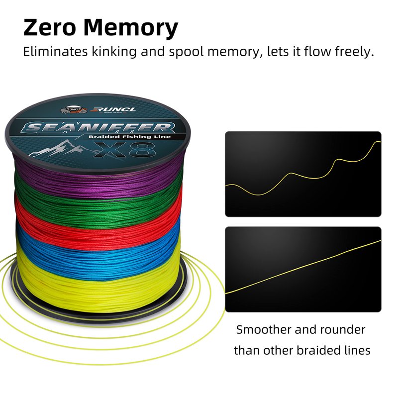 - Strong Abrasion Resistance: The braided line is made with 8 tightly woven strands of PE line, which offers superior abrasion resistance, and allows you to fish around hard structures.