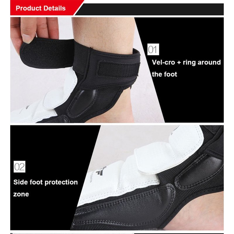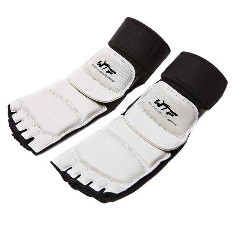 - Size(the length of foots): XS:8.7-9.0 inch; S:9.1-9.5 inch; M:9.6-9.9 inch; L:10.0-10.3 inch; XL:10.4-10.7 inch; XXL:10.8-11.1 inch. Suitable for Taekwondo/MMA/UFC/Thi/Martial Arts/Kickboxing training foot guard protection.