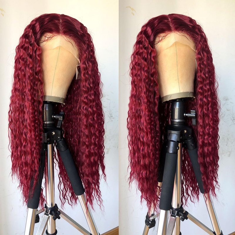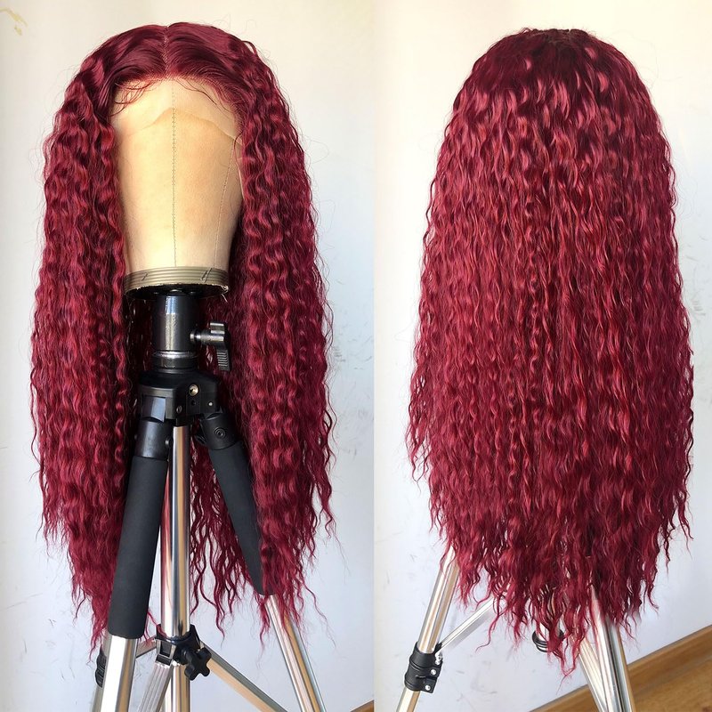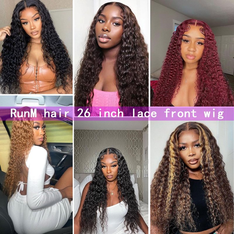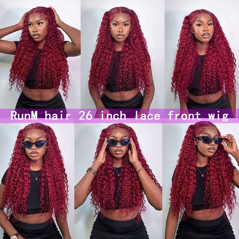 RunM Curly Lace Front Wigs for Black Women, HD Glueless 13X4X1 Long Curly Lace Front Wig with Baby Hair Synthetic Lace Front Wigs 26 Inch(Burgundy)