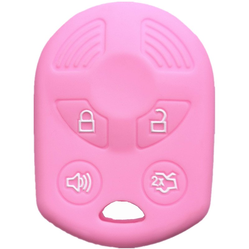 RUNZUIE Silicone Keyless Entry Remote Key Fob Cover Shell Compatible Fit for Ford Escape Explorer Mustang Transit Fusion Focus Lincoln Zephyr Mercury Grand Marquis Pink 4 Buttons