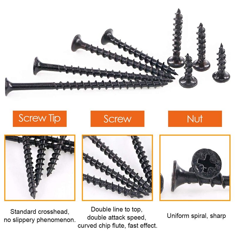 - ❤【ADVANCE MATERIAL】--- These drywall screws are made of high quality black carton steel, surface treated with black oxide, durable and strong, high in strength, non-deforming, anti-corrosion and anti-rust, package in durable transparent box, it can be reserved long time.
