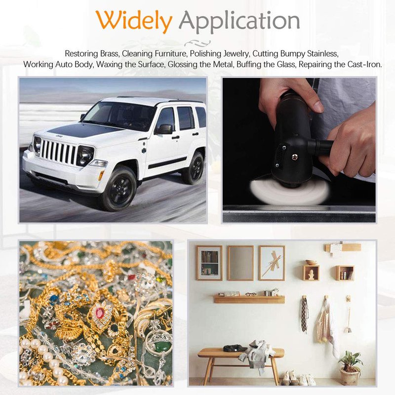 Usage: Restoring Brass, Cleaning Furniture, Polishing Jewelry, Cutting Bumpy Stainless, Working Auto Body, Waxing the Surface, Glossing the Metal, Buffing the Glass, Repairing the Cast-Iron and so on.