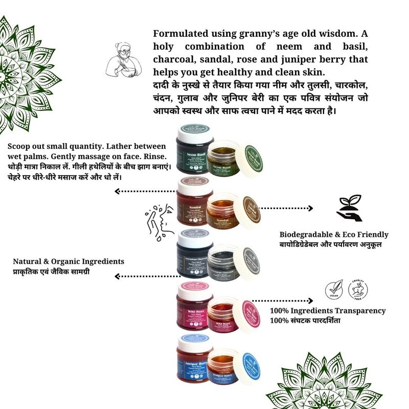 - Gentle yet effective formula for acne-prone skin made with real neem, tulsi (basil), lavender & lemongrass.