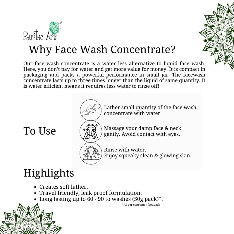 Rustic Art Neem Basil Face Wash Concentrate | Organic, Vegan & Cruelty Free | Sulphate & Paraben Free | 125g