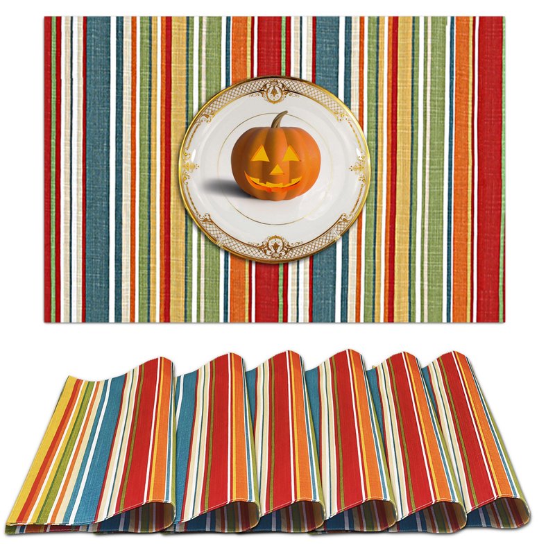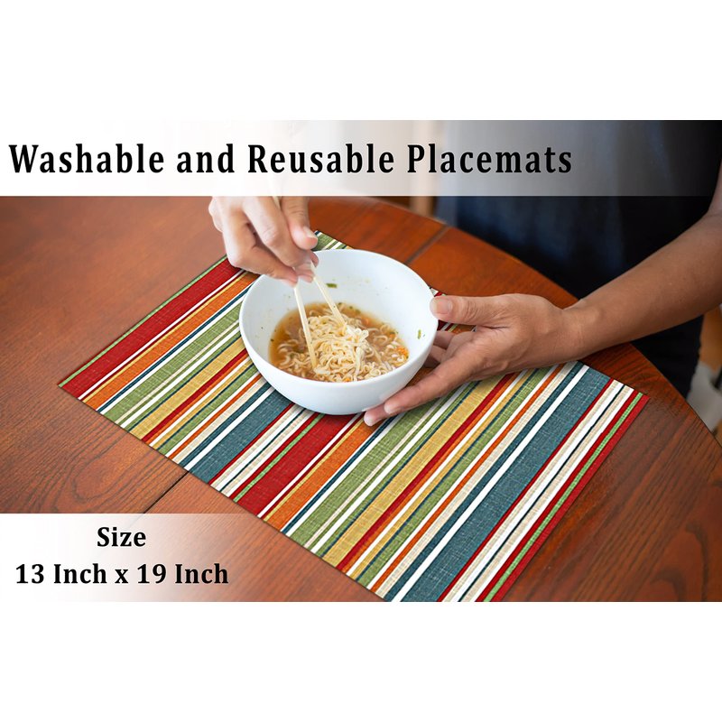 Ruvanti Placemats 100% Cotton 13x19 Inch, Dining Table Placemats Set of 6, Modern Place Mats for Dining Table Decor, Kitchen & Table Linens, Coffee Mat for Christmas Dinners – Multi Stripe
