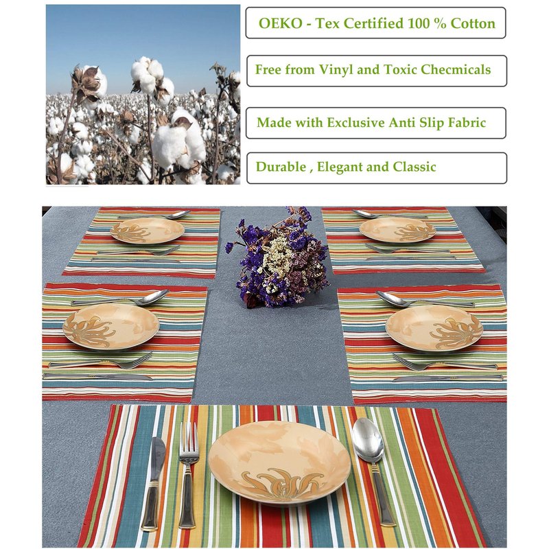 - Premium Material: Placemats Set of 6 is made with Top Quality 100% Cotton Duck Weave Fabric. Fabric is Soft, Wrinkle and Shrink-Resistant.