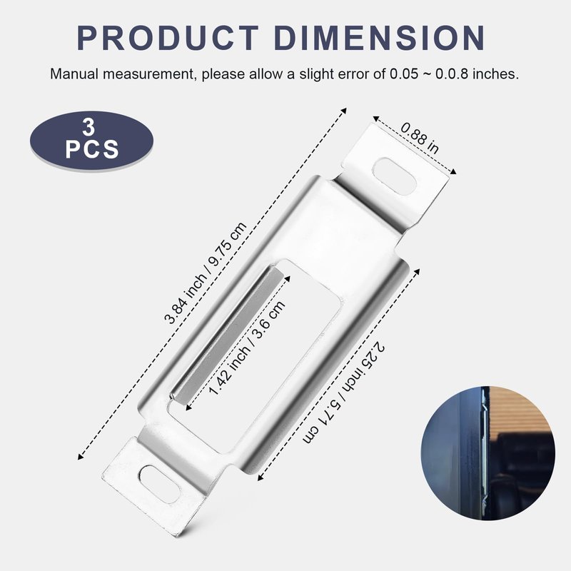 - √ Size of RV Luggage Door Locking Latch: RV door latch lock replacement strike plate L x 3.84 inch, W x 0.88 inch, other sizes are detailed in the main drawing of the product