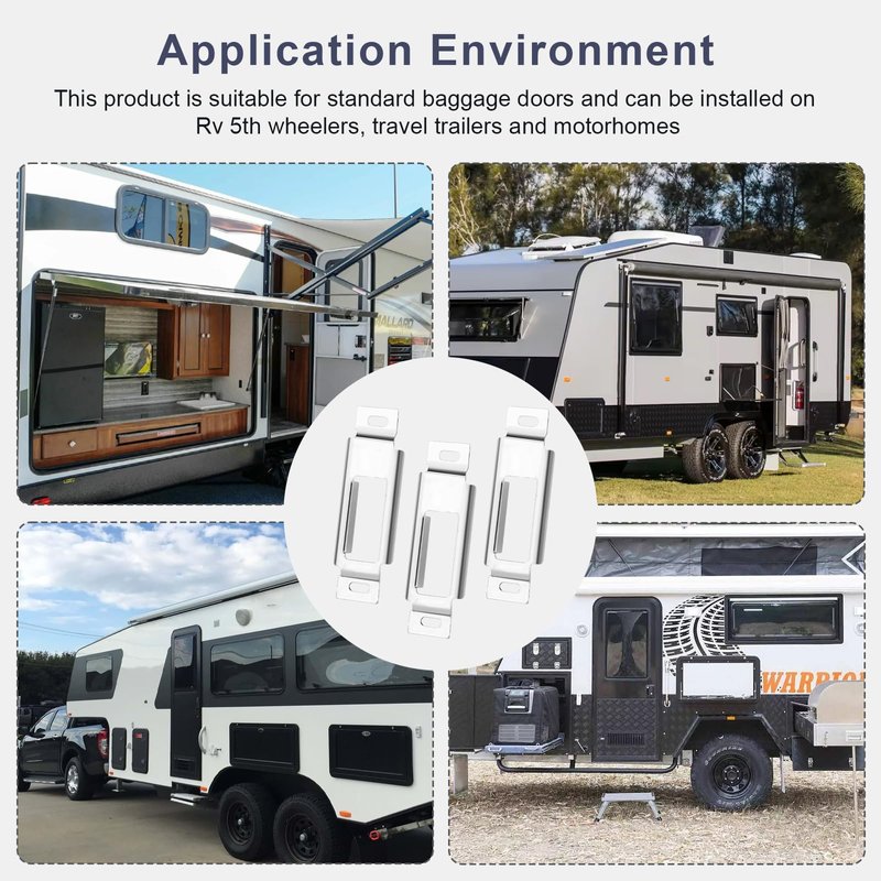Compatibility of RV Baggage Door Latch Strike Plate: RV entry door latch replacement parts is suitable for standard baggage doors and can be installed on RV 5th wheelers, travel trailers and motorhomes when when you are camping and using it as a camper