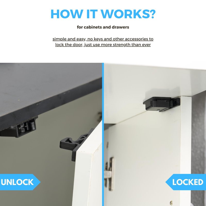 - Protect Your Baby From Potential Risk - Our camper latches also can be used to add more security on cabinets and drawers in the home kitchen and rooms. Ideal great affordable accessory to prevent your children from potential risk and make your pets stopping opening the drawers and cabinets. Protect your baby with our cabinet drawer latches from chemical,sharp things and other dangerous things stored in your home kitchen