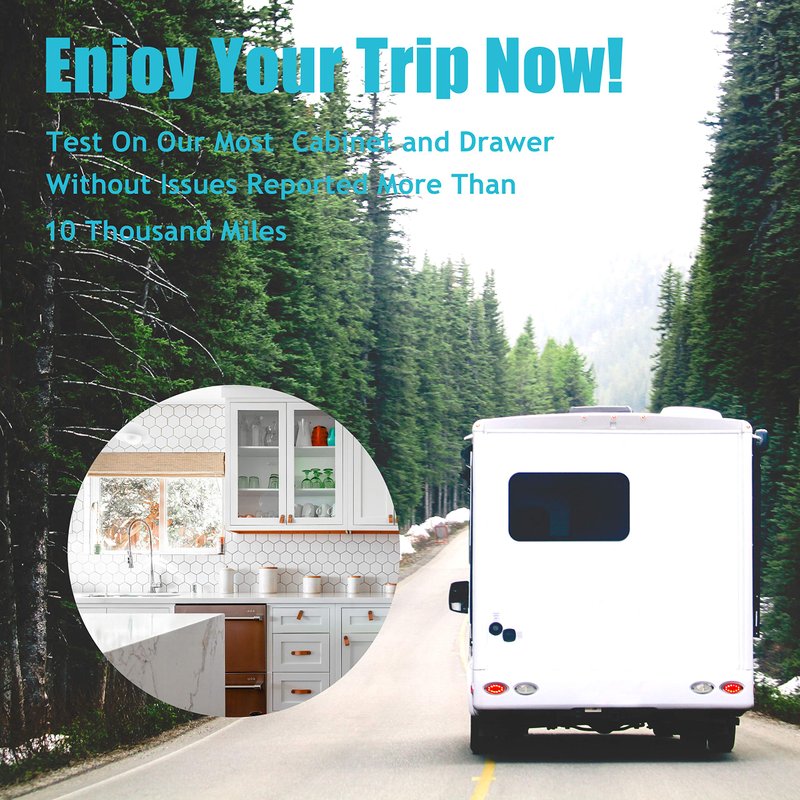 - Sturdy & Durable - Made of all weather high impact ABS, Easy to keep doors shut strongly with our latches with 8 lbs pull force. You have to pull the latches with more strength than ever, because our drawer latches are tighter than others. After 10 thousands miles, there is no issues reported of our RV latches and catches on most cabinets and drawers.