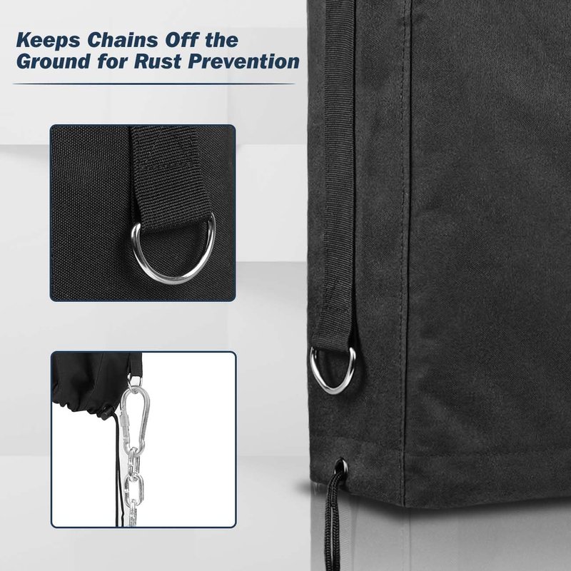 - Chain Management Feature: The cover is equipped with two side pegs designed specifically for holding the chains, maintains the chains off the ground, reducing the risk of rust. A thoughtful camper accessory that prolongs your chains' lifespan.