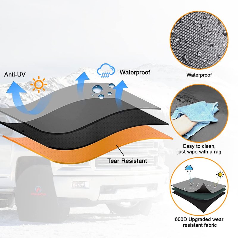 - 【Heavy-Duty Material RV Tire Cover】Made of 600D PU Oxford, Comnova waterproof tire covers have better flexibility and tensile strength than Vinyl, Non-woven fabric, 600D Oxford. PU coating material will be more breathable and better to prevent rust.