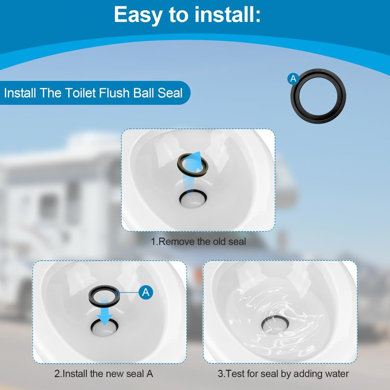 - 𝐄𝐚𝐬𝐲 𝐭𝐨 𝐈𝐧𝐬𝐭𝐚𝐥𝐥:Installing RV toilet seal ring is only take you a few minutes, quick and easy. turn off the water supply first, then popped the old seal out (no disassembly required of the toilet) and put the new flush ball seal in place ensuring it's seated in fully.