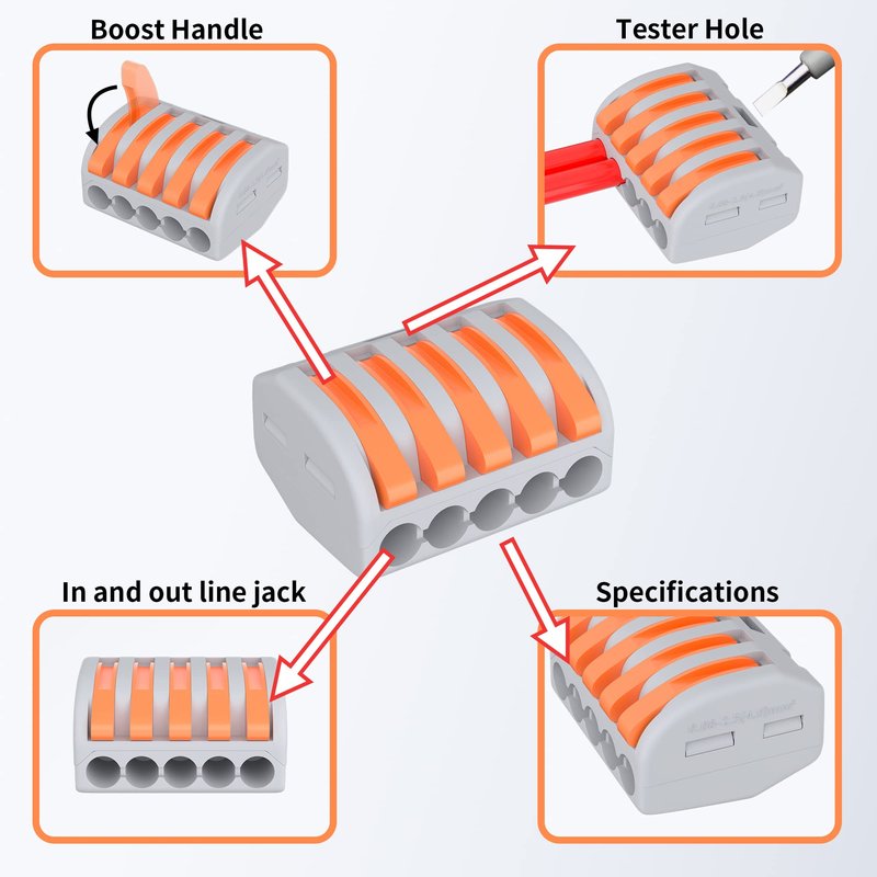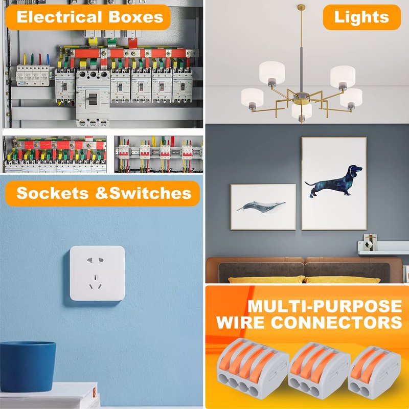 - 【Wide Application】Electrical connectors quick connect is widely used for ceiling fans, building wiring, ships, lighting, automatic doors, sockets, chandeliers, switches, cars, loudspeakers, electrical boxes, fan controls and so on.