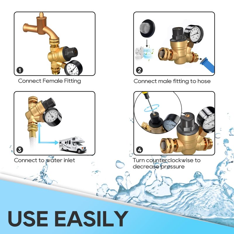 - Function: Prevent water pipes from being damaged due to high pressure, suitable for campers, trailers, and RV plumbing systems.