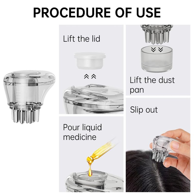 【Package Content】You will receive 1 piece of scalp applicator comb in transparent and it's capacity is 5ml. The scalp massager has many pieces of liquid flow column and the liquid flow can control the liquid speed.