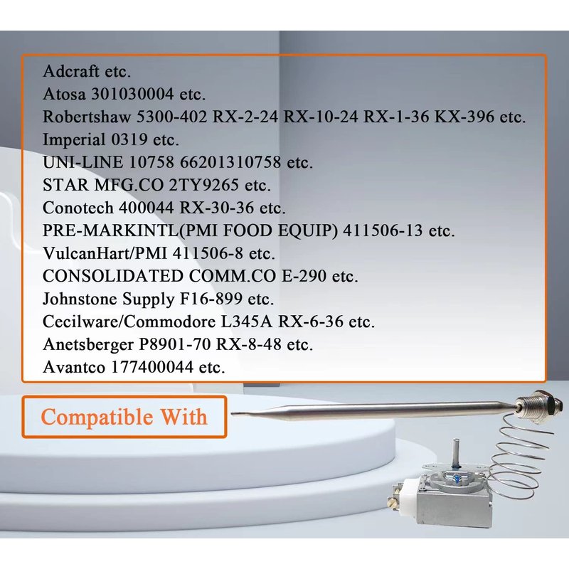 - [Replacement For]: RX-2-24 Fryer Thermostat compatible with Adcraft deep fryer,Atosa 301030004, Robertshaw 5300-402 RX-2-24 RX-10-24 RX-1-36 KX-396, Imperial 0319, UNI-LINE 10758 66201310758,STAR MFG.CO 2TY9265,Conotech 400044 RX-30-36,PRE-MARK INTL(PMI FOOD EQUIP) 411506-13