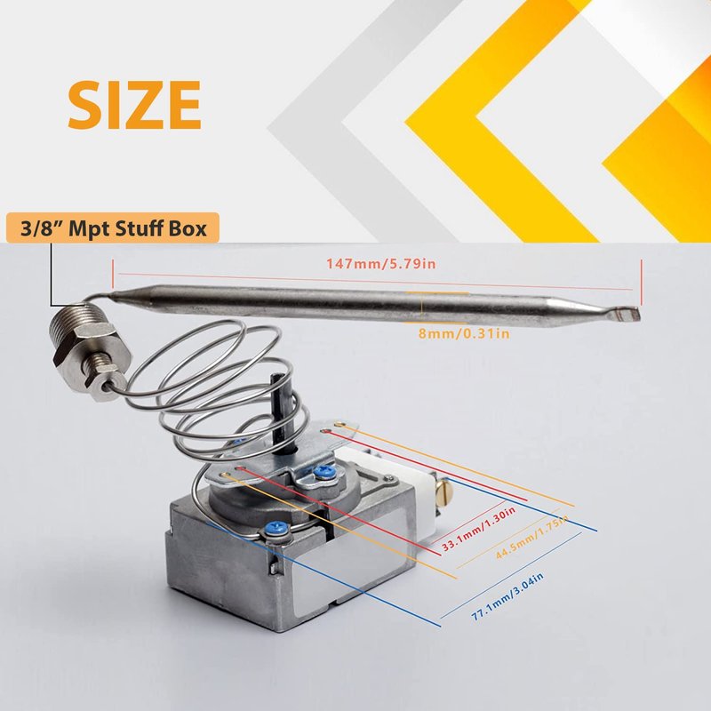 - 【Stable and Durable】The Thermostat works on millivolt systems, not electric. It only handles 5v & Works great. The bottom whole on fryers is 3/8 which this will work.