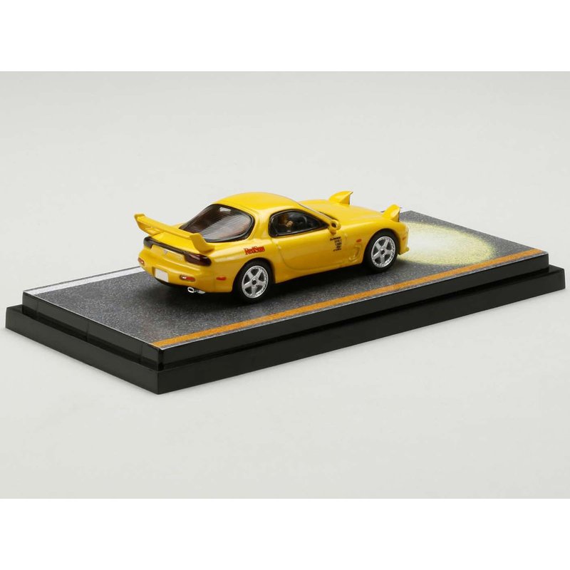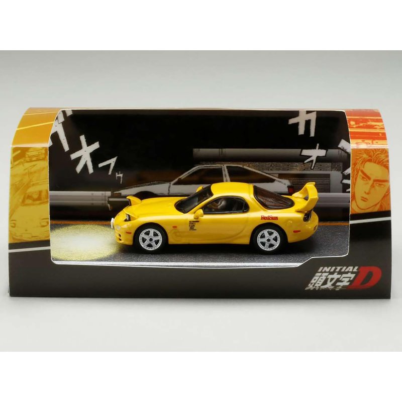 Brand new 1/64 scale diecast model car of RX-7 (FD3S) RHD (Right Hand Drive) Yellow "RedSuns" with Keisuke Takahashi Driver Figure (Version 2) "Initial D" (1995-2013) Manga die cast model car by Hobby JapanHJ645007DA