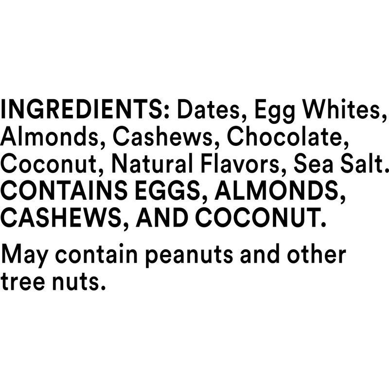 - Our Coconut Chocolate RXBAR is the perfect protein bar for any coconut lover; Made with egg whites for protein, dates to bind, nuts for texture