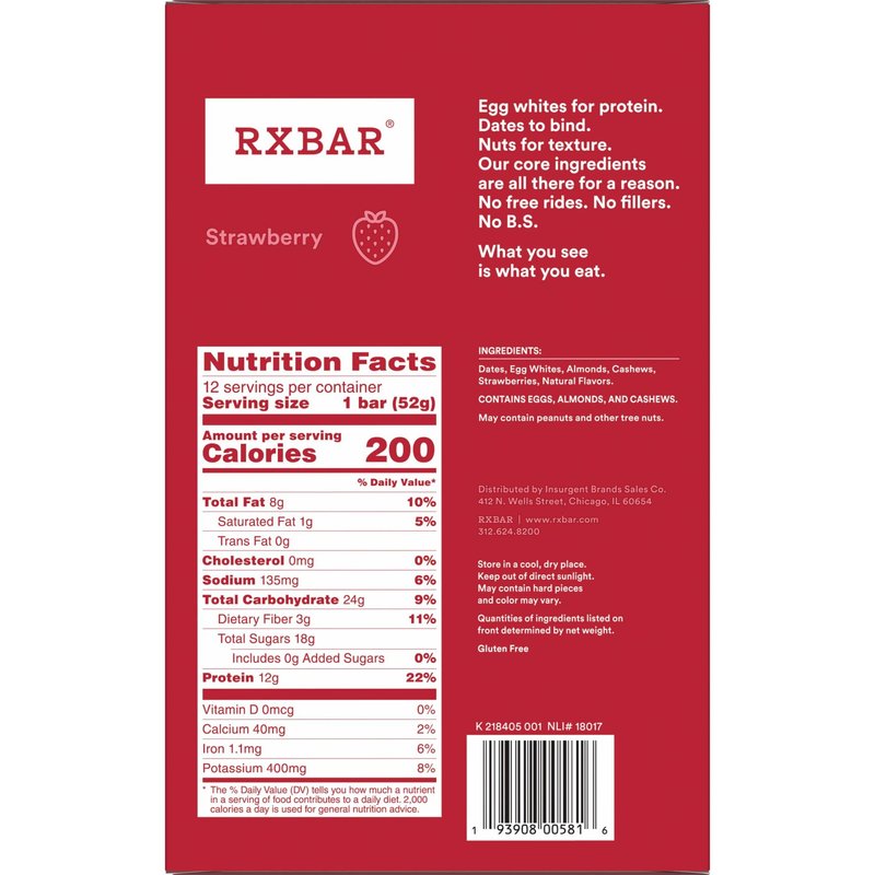 RXBAR Protein Bars, 12g Protein, Gluten Free Snacks, Strawberry, 22oz Box (12 Bars)