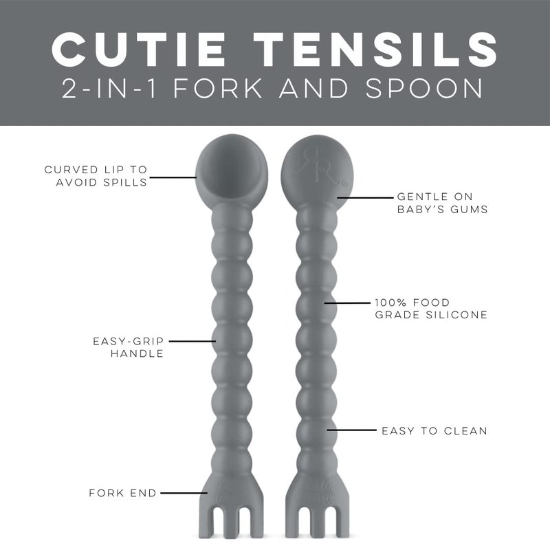 Ryan & Rose Cutie Tensils Baby Spoon and Fork [2 Pack] (Charcoal)