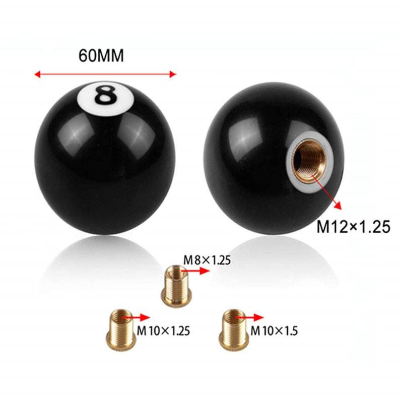 RYANSTAR Shift Knob Black 8 Ball Billiard Acrylic Gear Shift Lever Shift Knob Black Shaped Round Manual with 3 Adapters Universal Fit Compatible with Manual Car M 81.25, M 101.25, M 101.5, M 121.25