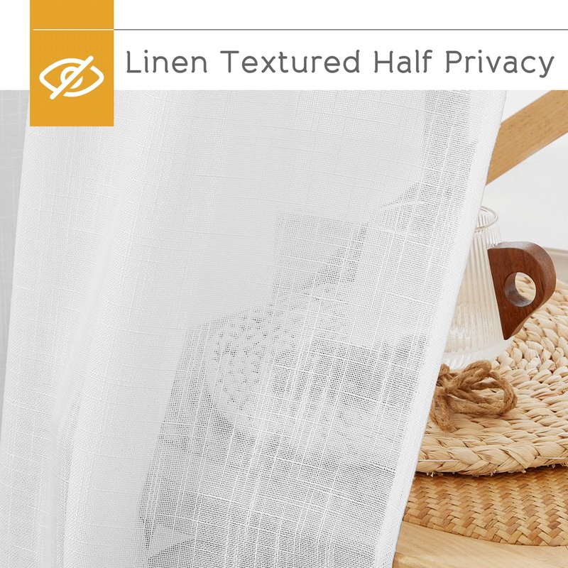 - PRIVACY SEMI SHEER - Beautifully frames your windows with a soft and hazy vision. Softly filtering out harsh sunlight and let the breeze flow through your windows. Appears a light, airy and privacy look for bedroom, kitchen, living room, bathroom, laundry room, studio...