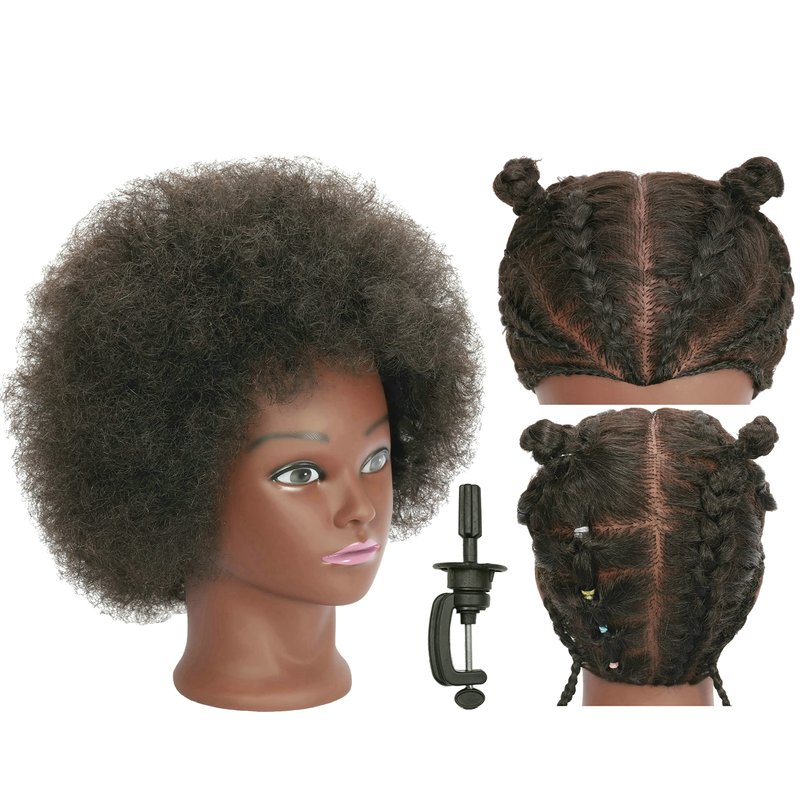 - ★★★Package:1*african american afro professional curly hair mannequins head,1*table clamp stand;