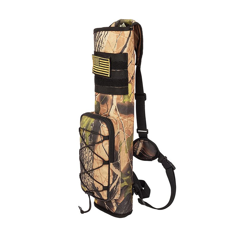 - ADDITIONAL LOAD CAPACITY —— High wearproof and multi-function Large storage pocket with quality zipper It can hold your arm guard, arrows puller and other archery accesories, and the surface with a contraction belt, you can tie the water cup and other items
