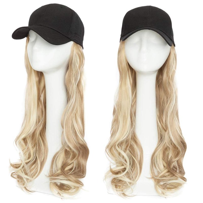 - Baseball Cap Hair Extension is made by high quality synthetic fiber, Divine Style, Curly And Corn Wave Texture, Invisible And Cool;