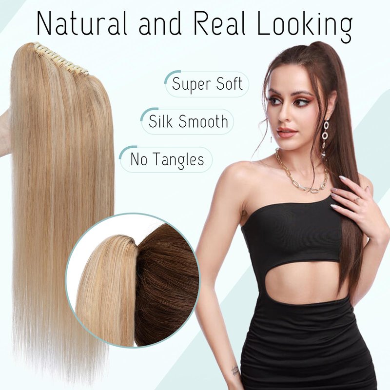 - [Human Hair Texture]: Sourced from donors, our human hair extensions maintain a consistent cuticle alignment for seamless blending. Style your ponytail as you would your real hair - curl, straighten, dye, highlight, or trim it to your preference. To maximize hair lifespan, avoid frequent use of heating tools and provide proper care for a healthy shine.