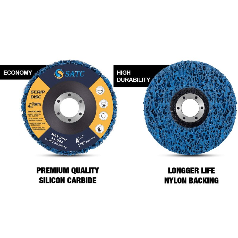 - π LONGEST LASTING: Paint remover improved nylon web fibers and an extra course abrasive for longer life. Blue clean and strip discs has a longer life than black clean and strip discs.