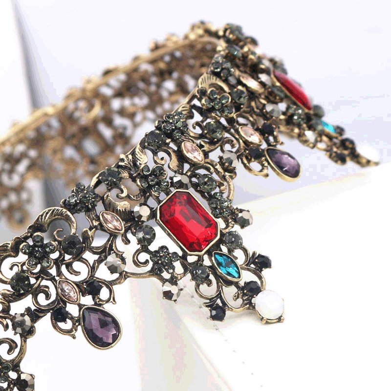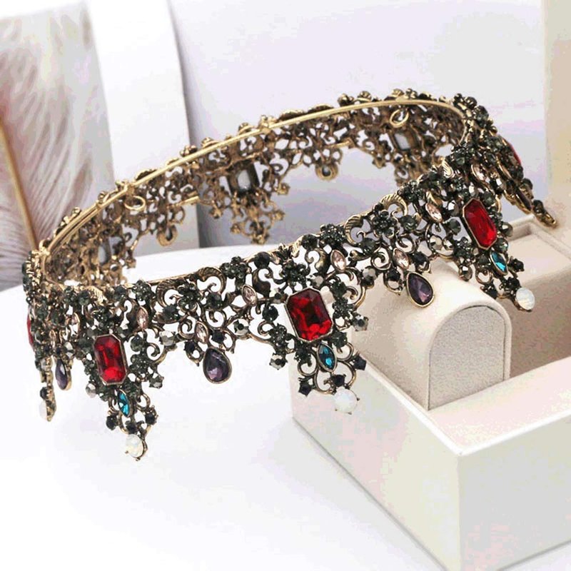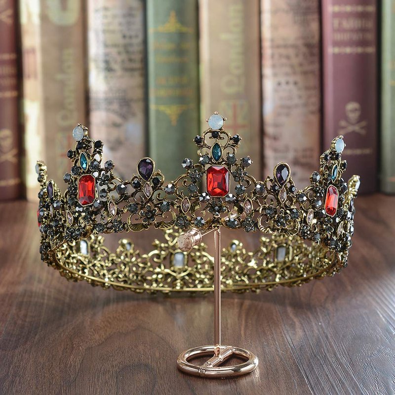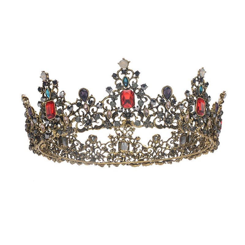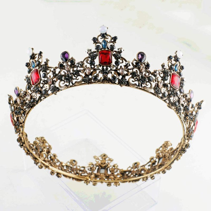 - The imperial court crown is inlaid with many black rhinestones, dotted with red gems,blue gems,purple gems and opals, very retro and special.