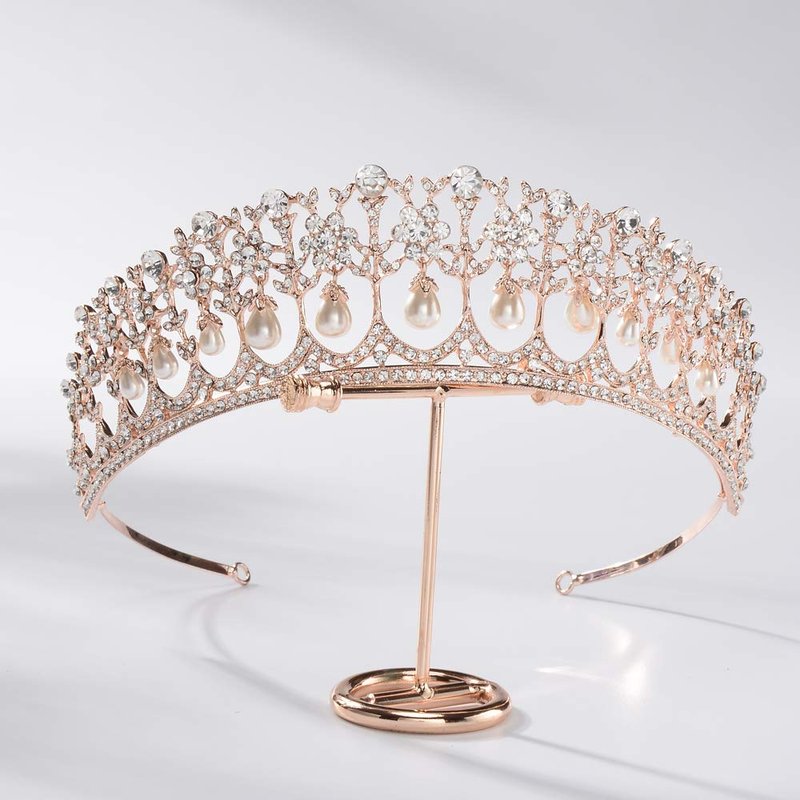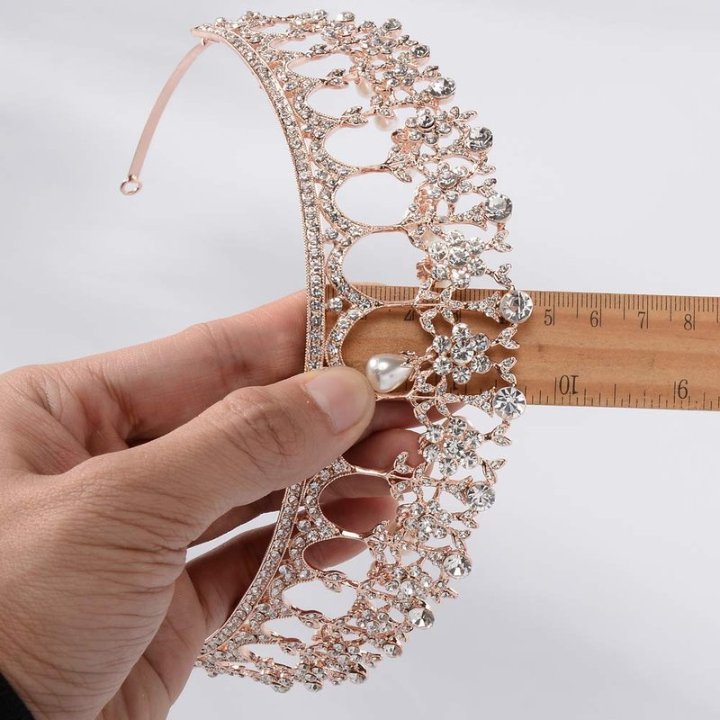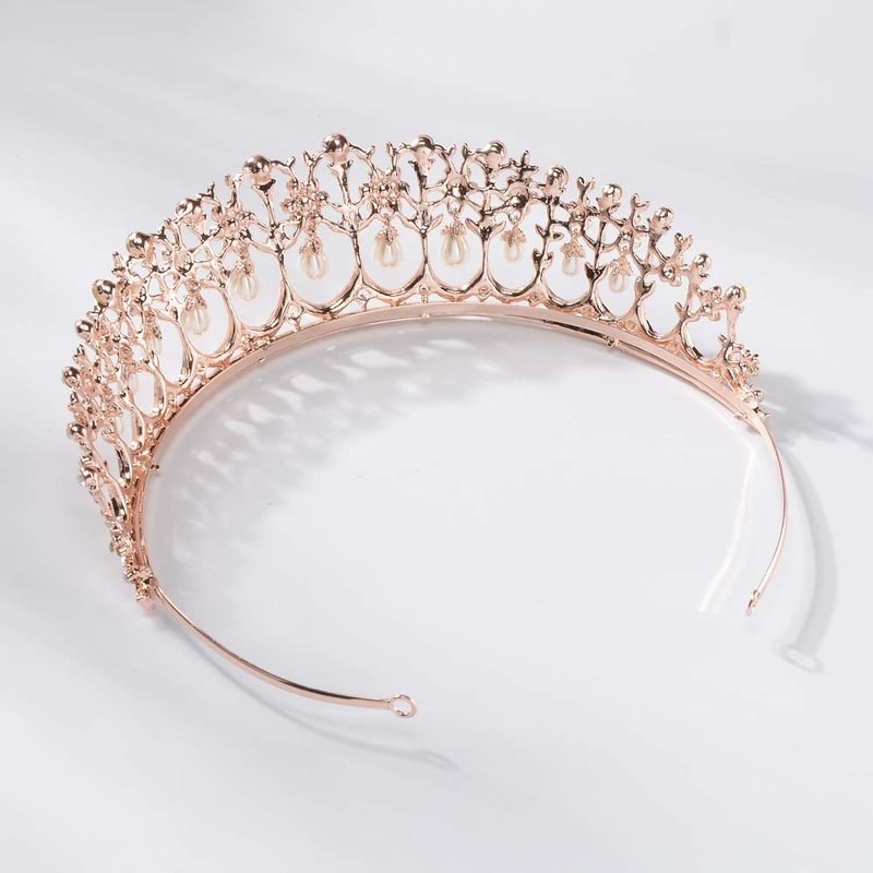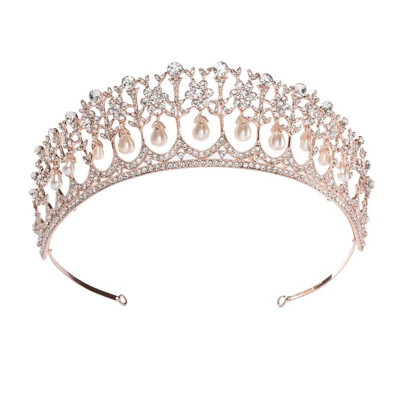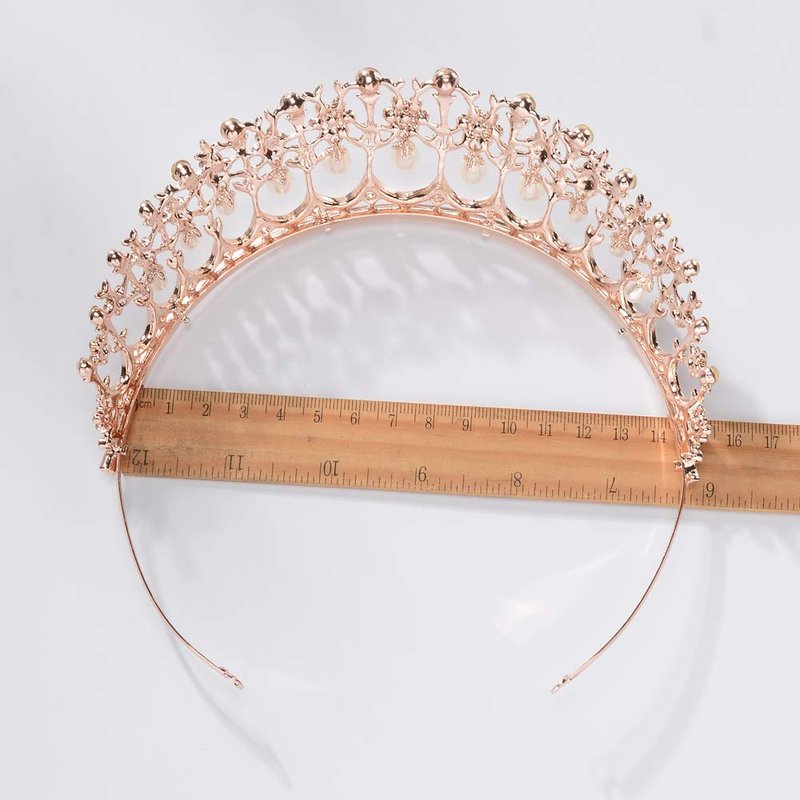- Material: This rose gold tiara is made of hard alloy, crystals and pearls