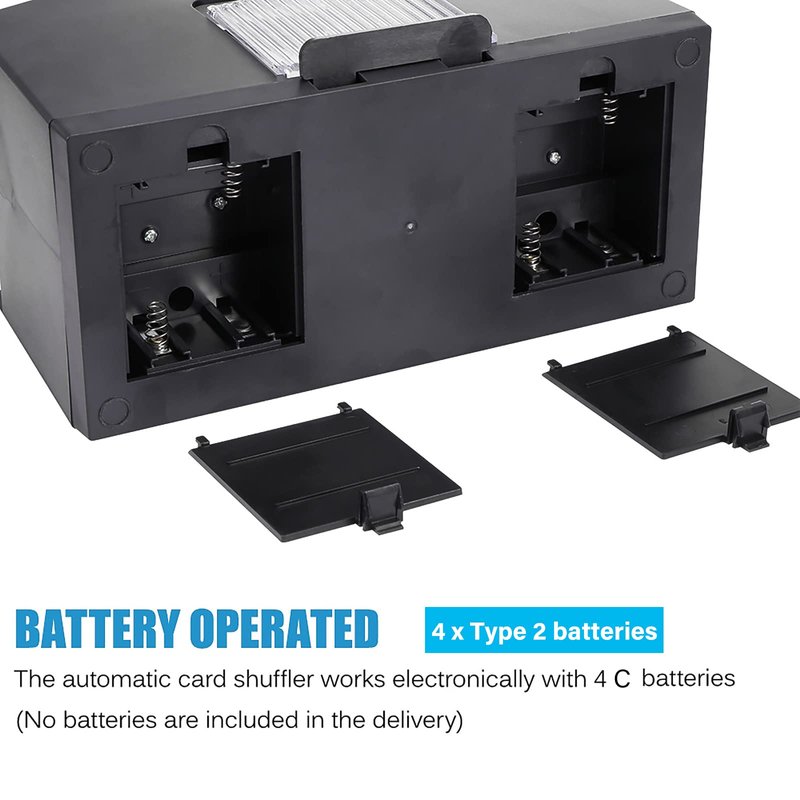 - ROBUST: The shuffler is made of high-quality plastic, durable, long service life, ultra-low noise, easy to use, and uses 4 C batteries - 4 x Type 2 batteries(not included) to work electronically.
