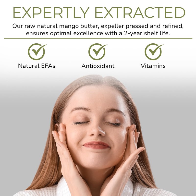 - Expertly Extracted - Our raw natural mango butter, expeller pressed and refined, ensures optimal excellence with a 2-year shelf life. Packed with natural EFAs, antioxidants, and vitamins, this mango butter bulk outshines in enhancing skin vitality that rivals shea and cocoa in efficacy.