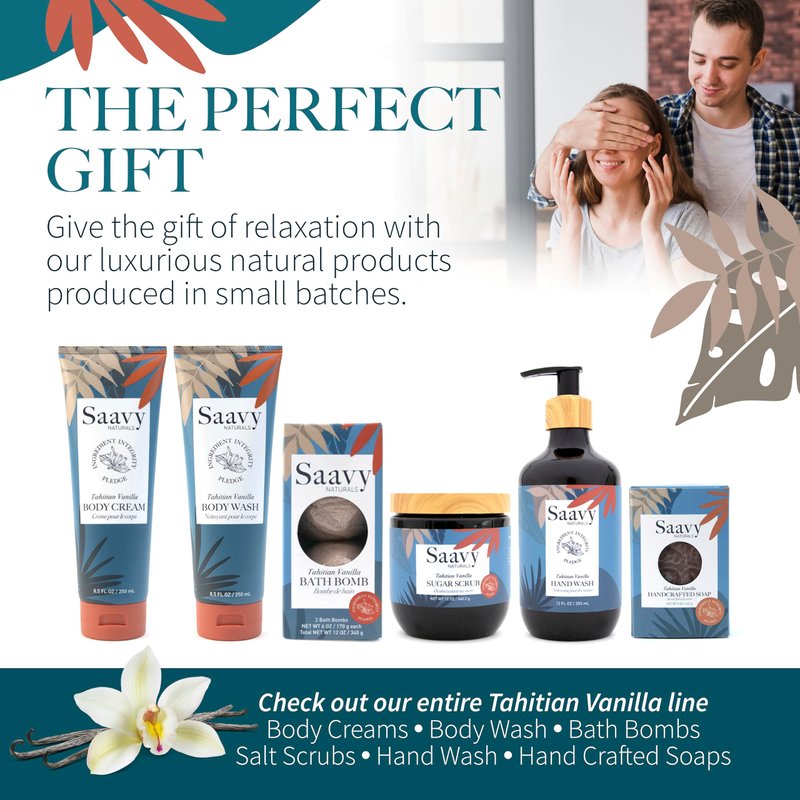 Saavy Naturals Tahitian Vanilla Liquid Hand Soap - Moisturizing Formula with Aloe Vera, Shea Butter, and Vanilla Extract - 12 Fl Oz, 2 Pack
