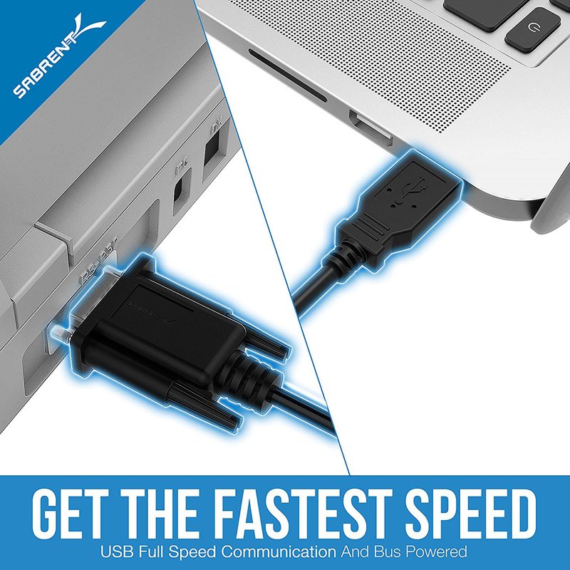 SABRENT USB 2.0 to Serial (9-Pin) DB-9 RS-232 Adapter Cable 6ft Cable [FTDI Chipset] (CB-FTDI)