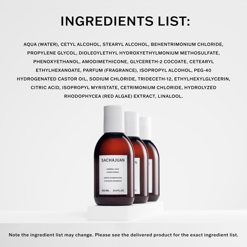 - INGREDIENTS: AQUA (WATER), CETYL ALCOHOL, STEARYL ALCOHOL, BEHENTRIMONIUM CHLORIDE, PROPYLENE GLYCOL, DIOLEOYLETHYL HYDROXYETHYLMONIUM METHOSULFATE, HYDROLYZED RHODOPHYCEA EXTRACT, PHENOXYETHANOL, AMODIMETHICONE, GLYCERETH-2 COCOATE, CETEARYL ETHYLHEXANOATE, PARFUM, ISOPROPYL ALCOHOL, PEG-40 HYDROGENATED CASTOR OIL, SODIUM CHLORIDE, TRIDECETH-12, ETHYLHEXYLGLYCERIN, CITRIC ACID, ISOPROPYL MYRISTATE, CETRIMONIUM CHLORIDE, LINALOOL, ,