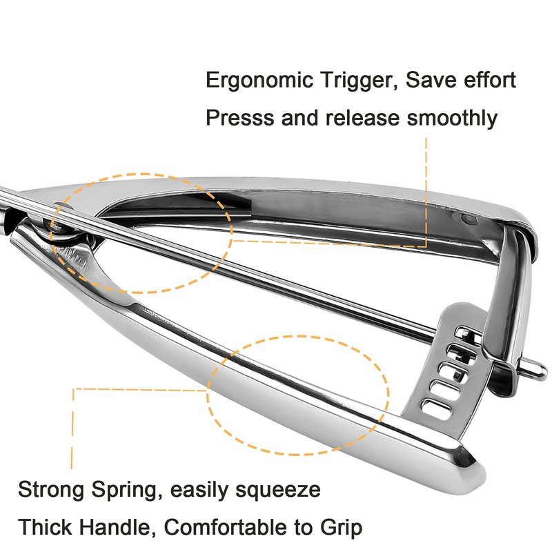 With secondary polishing, the metal ice cream scoop with trigger has gleaming surface. The beautiful look will be a hot addition to your kitchen.