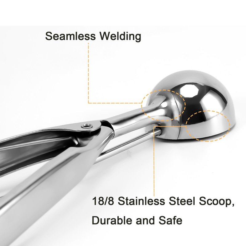 Made of food grade high quality 18/8 stainless steel, food grade, the cookie scoop medium is safe to direct contact with food.
